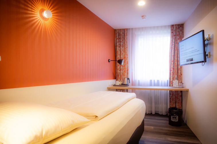 Economy Zimmer, 12 m², Bettengöße 100x200, Smart TV, Kaffee- und Tee Zubereitungsmöglichkeit, Schreibtisch, kostenfreies WLAN, Leih - Bademantel, Zugang zum Garten, Schwimmbad und Wellnessbereich inklusive
