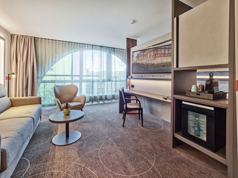 Suite, gemütliche Sitzecke, Schreibtisch, Flatscreen TV, Klimaanlage, inklusive Frühstücksbuffet